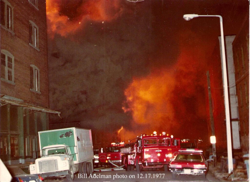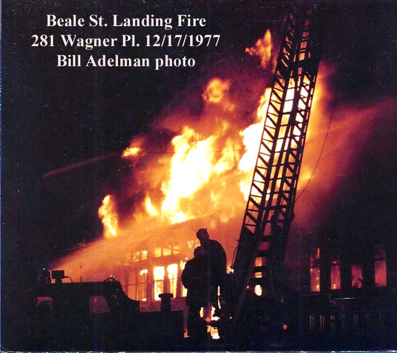 commercial units was in its initial phase. One of the first and most ambitious of these projects was the Beale Street Landing, a series of warehouses on Wagner Place south of Beale Street which were to be converted into retail stores. On December 17, fire was reported in the area around 6:00 p.m., and it was discovered at one of the warehouses slated for redevelopment. The first arriving companies found an intense and rapidly spreading fire in a block-long two-story warehouse. Wind-driven flames threatened to ignite similar buildings on the east side of the narrow street. Three alarms were sounded, bringing additional fire companies to battle the raging fire with heavy stream equipment and aerial ladder trucks. The building was entirely destroyed, leaving firemen to shift their efforts toward preserving the other buildings nearby. Ironically, the sprinkler system had been shut down to prevent water pipes from freezing in the unheated building. The fire was later attributed to vagrants living in the empty warehouse, which prompted fire department officials to begin a major sweep of downtown buildings to remove vagrants.